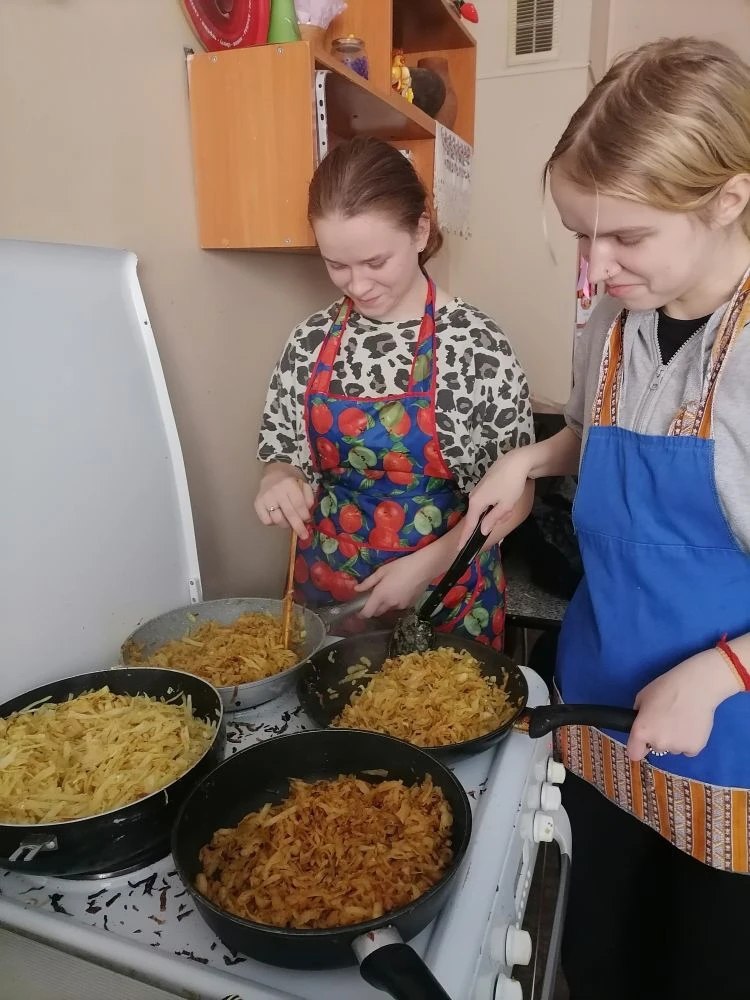 Для начала школьники скрутили маскировочные сети. Затем девочки пожарили 20 кг капусты для пирогов и испекли 200 ароматных булочек. Парни помогли загрузить большую партию продуктов и вещей в машину, предназначенную для доставки бойцам. Подробнее на ТИА