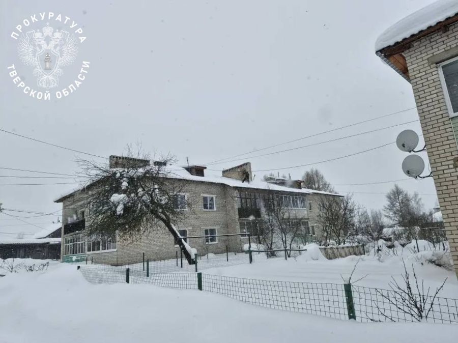 Сегодня, 19 февраля, в двухэтажном жилом доме на улице Мира под тяжестью снега частично провались крыша. По информации прокуратуры Тверской области, пострадавших при этом не было.