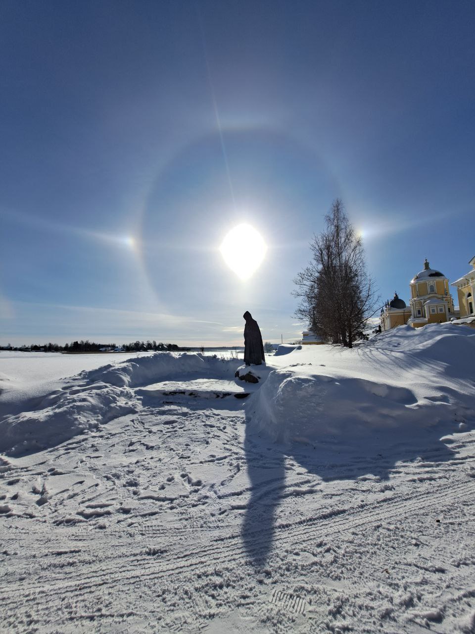 «В первый день Великого поста у Ниловой пустыни было замечено атмосферное оптическое явление - гало. Дивны дела Твои, Господи!», - написали в сообществе в мессенджере.