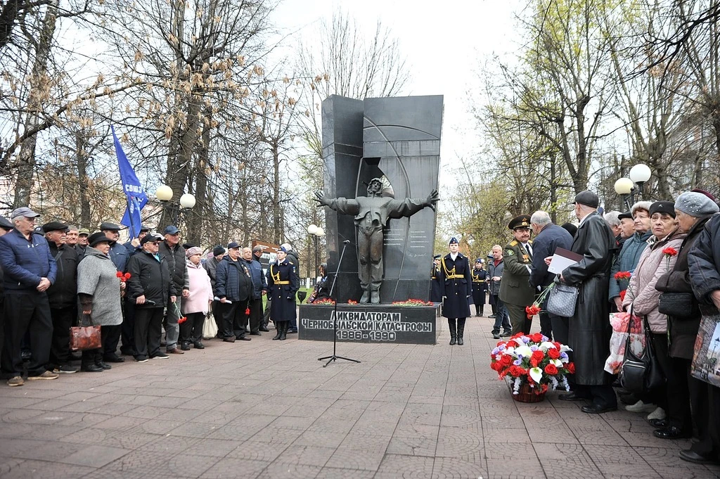 Собравшиеся почтили память жертв одной из самых страшных техногенных катастроф в истории минутой молчания и возложили цветы к мемориалу.