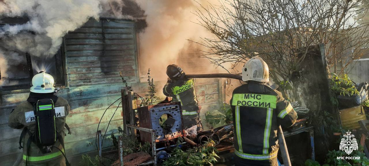 При пожаре в Калининском округе газовый баллон едва не разнес хозпостройку