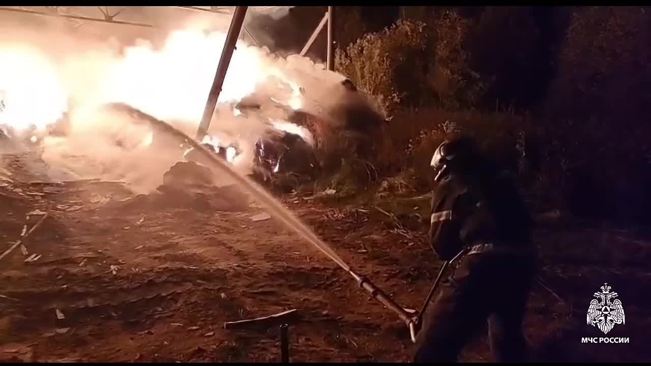 Под Тверью горит ангар с сеном: видео.