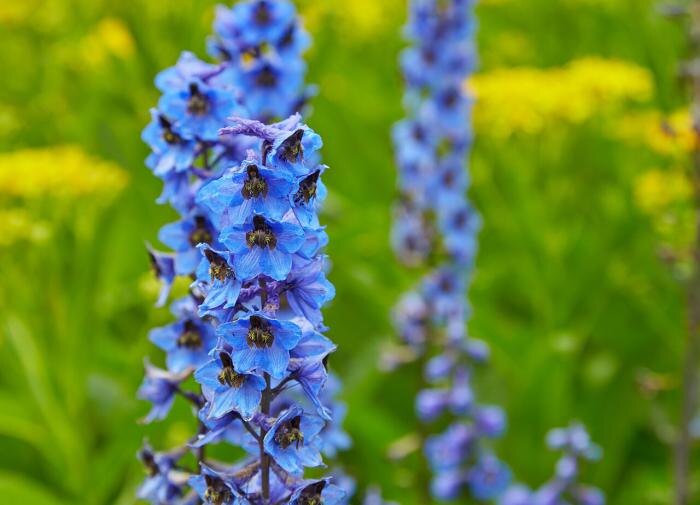 Из-за своей высоты дельфиниумы могут нуждаться в дополнительной поддержке. В начале вегетационного периода установите колья или опоры, чтобы избежать сломанных стеблей под тяжестью цветков.