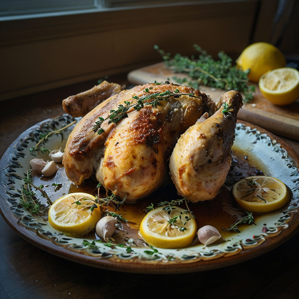 Куриные бедрышки, замаринованные в оливковом масле, лимонном соке и чесноке, с добавлением свежего тимьяна, обжариваются до золотистой корочки. Это блюдо станет идеальным решением для семейного ужина.