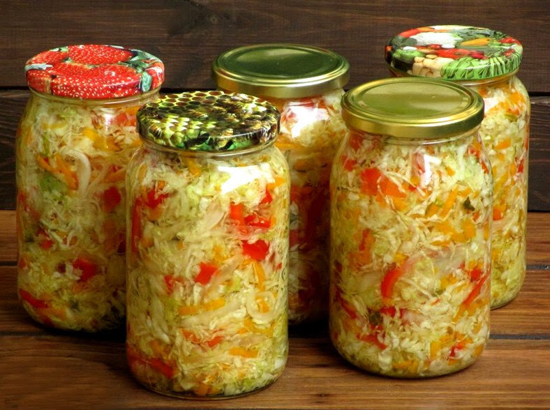 Разложите капусту по стерилизованным банкам, прижмите её, чтобы маринад полностью покрывал все ингредиенты. Закройте банки пластиковыми или капроновыми крышками и отправьте в холодильник. Так закуска будет храниться минимально два месяца, а в холодных погребах её срок может достигать весны.