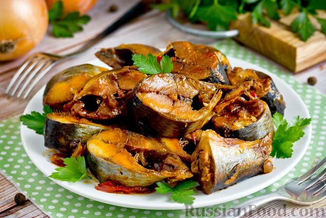 - Селедка, тушенная с овощами в томатном соусе — это блюдо, в котором рыба обретает новый вкус благодаря маринаду. Кости становятся нежными и практически незаметными, что позволяет наслаждаться каждым кусочком.