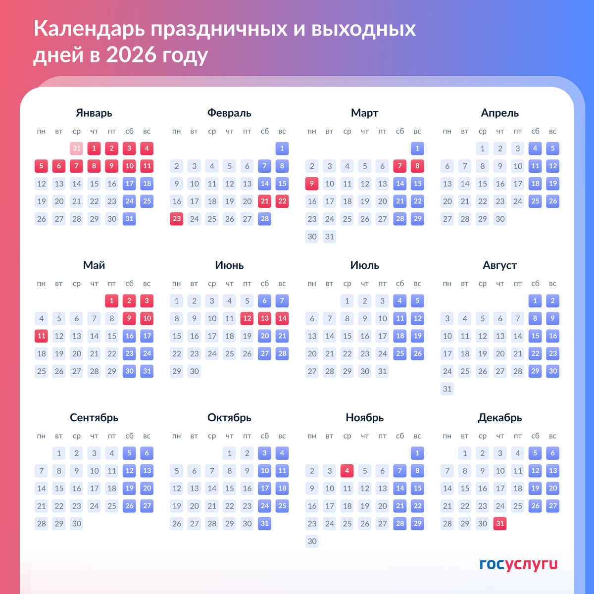 Для тех, кто планирует свой отдых заранее, вот основные праздничные дни в 2026 году: