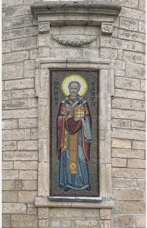 В деревне Ушаковские Горки Старицкого округа находится храм в честь святителя Николая Мирликийского. Недавно наружную сторону храма украсила мозаика с образом святителя Николая. Работу выполнили изографы из Дубны Ольга и Анна Володины, а также их куратор М.Г. Поляков.