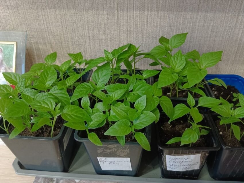 Пересаженные перцы в первые дни могут расти под фитолампами, чтобы обеспечить им достаточное количество света. При правильном уходе рассада быстро утолщает стебли и наращивает листья, что свидетельствует о её здоровье.