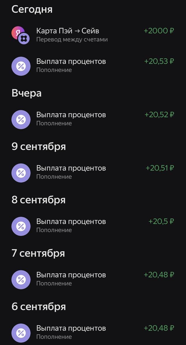 В этом месяце фондовый рынок и накопительный счет от Яндекс Банка получили добавочные 2000 рублей. Напоминаем, что в августе завершилась повышенная ставка по счёту в МТС, и средства были переведены на новый счет «Сейв» в Яндекс Банке. Этот счет предлагает впечатляющие 19% годовых на протяжении двух месяцев для подписчиков, и обеспечивает ежедневную капитализацию, что позволяет видеть результат прямо на экране. К 12 сентября сумма на счете составила 41 481 рубль.