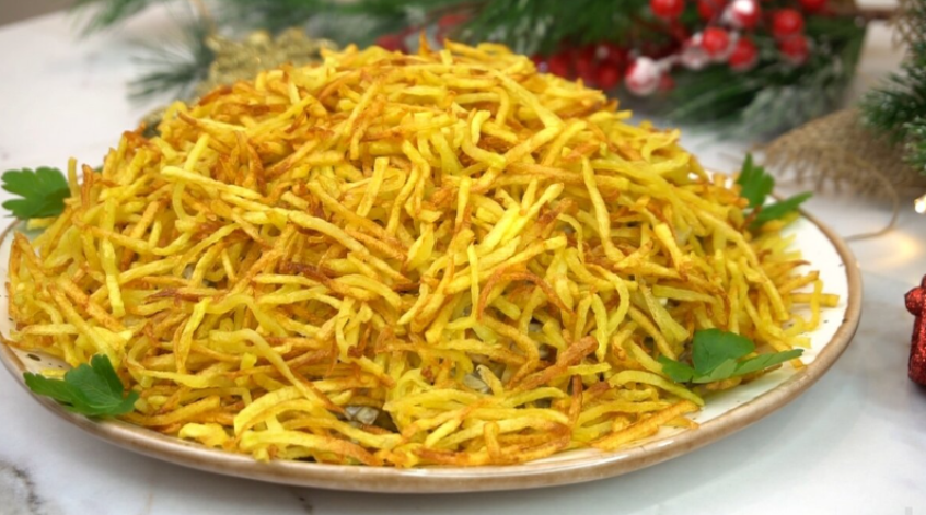 Такой салат станет звездой любого стола! Его можно подать в охлажденном виде и украсить зеленью или ломтиками огурца. Делитесь этой вкуснятиной с родными и друзьями — они точно вас приятно удивятся!