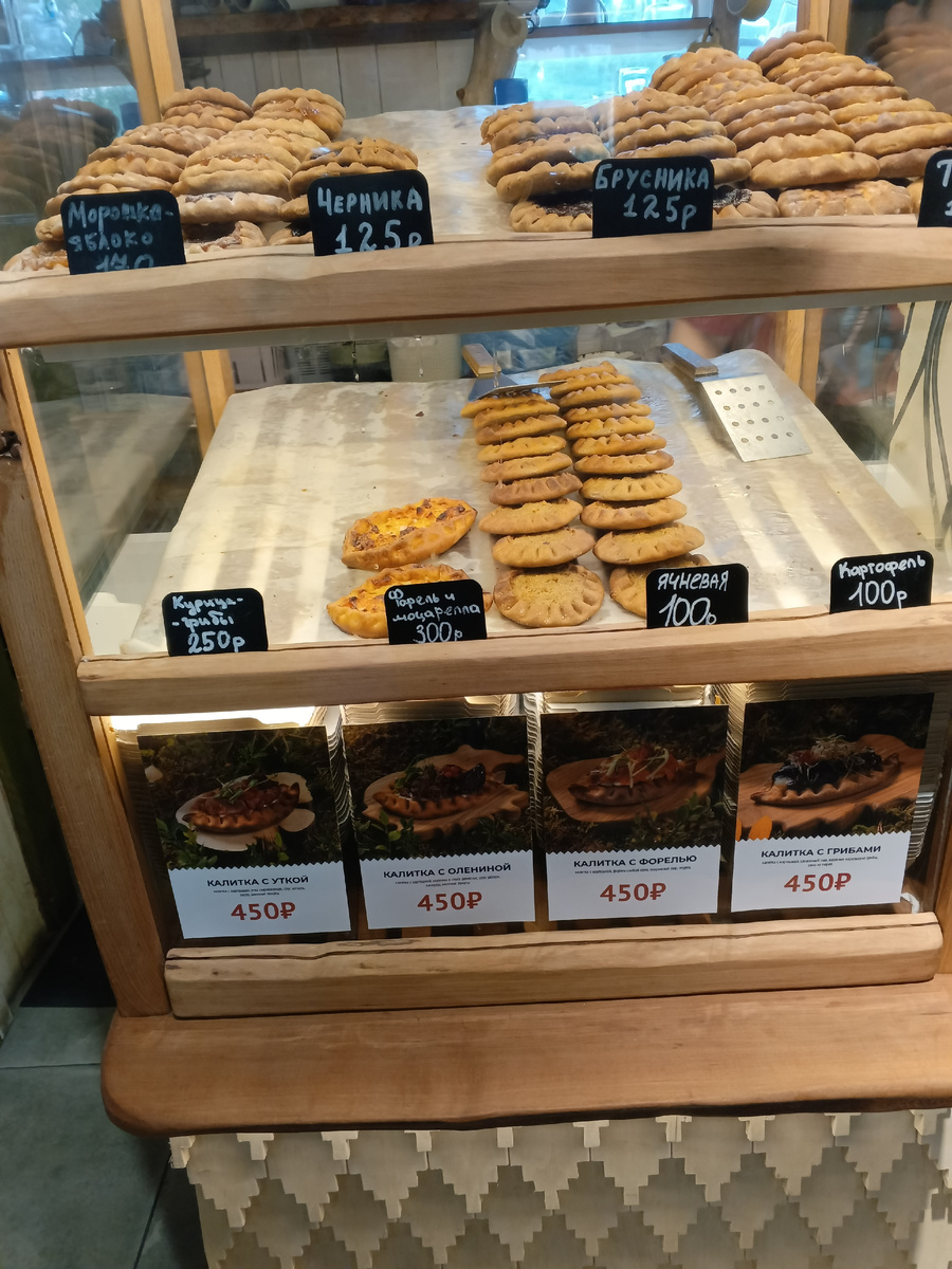 Основное гастрономическое предложение «Калиточной» - калитки. Эти традиционные карельские пирожки отличаются своей формой и разнообразием начинок. В меню представлены как классические варианты с картошкой и рисом, так и необычные - с олениной и морошкой. В дополнение к этому, «Калиточная» предлагает множество сладких угощений и напитков на любой вкус. Для любителей чая здесь можно найти ароматные травяные смеси и местные деликатесы.