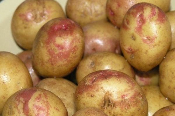 Неповторимая окраска клубней — это то, что отличает эту картошку. Кожура желтая с красными пятнами, а сама картошка имеет форму, близкую к округлой, что делает его еще более привлекательным для покупателей. Урожайность этого сорта варьируется от 190 до 320 килограммов с квадратного метра, в зависимости от региона выращивания.