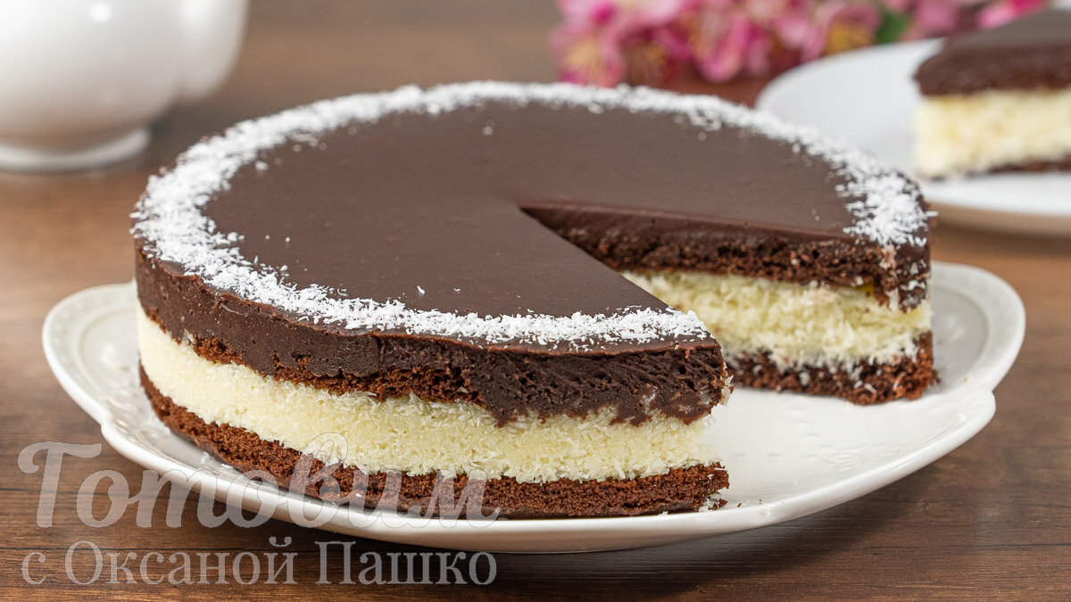 Остывший бисквит делится на два коржа. На первый корж выкладывается кокосовый крем, равномерно распределяемый по всей поверхности, затем накрывается вторым коржом. Готовится шоколадная глазурь, которая также аккуратно наносится сверху. Для достижения наилучшего результата торт оставляют в холодильнике как минимум на четыре часа.