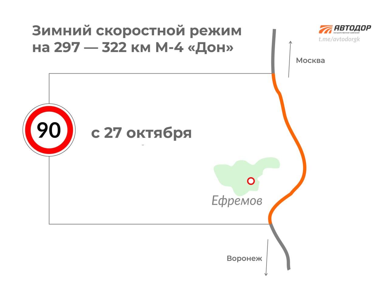 С 27 октября 2025 года отменяется повышенный скоростной режим до 130 и 110 км/ч, который сейчас действует на трассах М-11 «Нева» и М-4 «Дон» для легковых и грузовых автомобилей до 3,5 тонн.