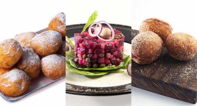 - Германия: Пиршество начинается с запеченного свиного окорока, с которым сперва встречают Новый год. Также популярны берлинеры — сладкие пончики, которые символизируют единство и радость.