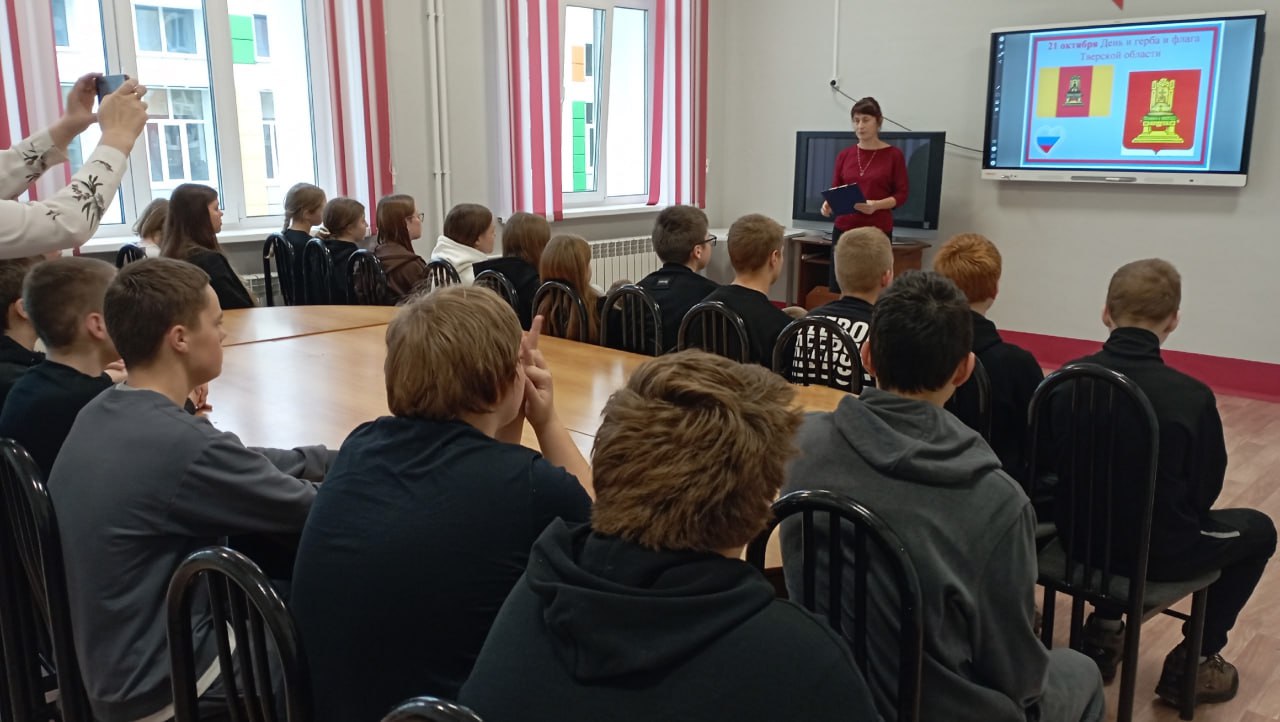 В преддверии празднования Дня герба и флага Тверской области председатель ТИК Весьегонского округа Алла Лисенкова совместно с библиотекарем Ириной Рачковской провели для учащихся 8-х классов Весьегонской школы познавательное мероприятие, направленное на знакомство с историей региональной символики. Информационная часть включала рассказ о значении герба и флага Тверской области, их роли в становлении региональной идентичности.