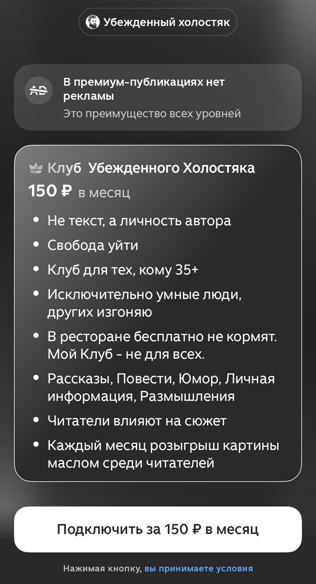 Клуб предлагает уникальный опыт, который невозможно получить в привычных форматах. Как в хорошем ресторане, где за качественное обслуживание нужно платить, Клуб Убежденного Холостяка обеспечивает исключительное содержание и атмосферу для своих членов. Бесплатные форматы, хотя и удобны, не способны предоставить тот же уровень вовлеченности и удовольствия от чтения.