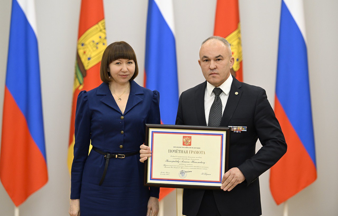 Почётная грамота Президента России вручена председателю правления ТРО Общероссийской общественной организации «Российский Союз ветеранов Афганистана и специальных военных операций» Алексею Виноградову.
