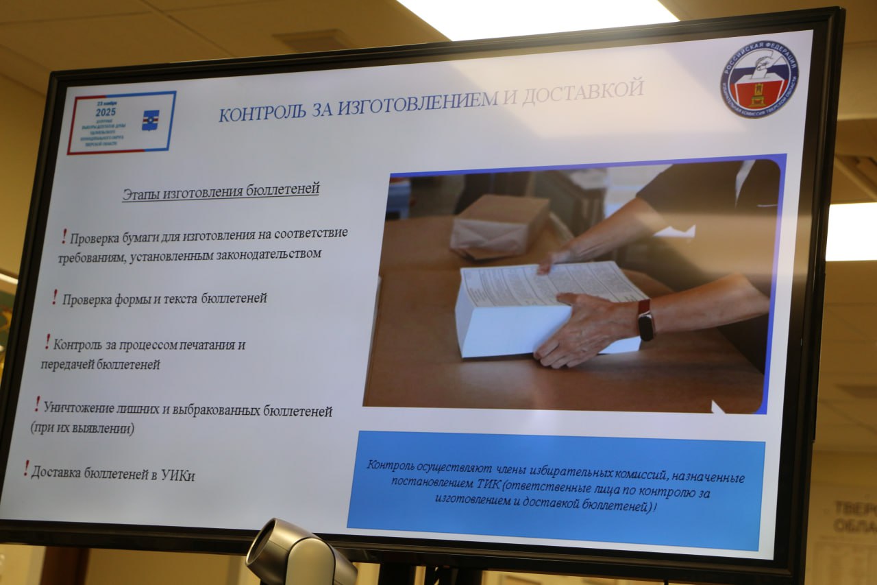 В режиме видеоконференцсвязи председатель облизбиркома Валентина Дронова, секретарь комиссии Светлана Задумова, сотрудники аппарата избирательной комиссии представили презентационные и методические материалы, связанные с изготовлением избирательных бюллетеней и информационных плакатов, проведением жеребьевок в средствах массовой информации для размещения предвыборных агитационных материалов зарегистрированных кандидатов в депутаты Думы, аккредитацией представителей СМИ для работы на выборах, сформулировали задачи ТИК по осуществлению контроля за проведением предвыборной агитации.
