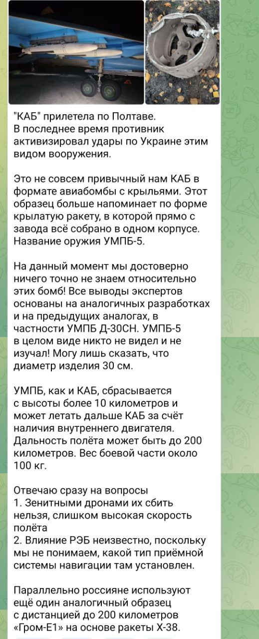 В общем уже можно рассказать детали про нашу новую планирующую авиабомбу, с дальностью под 200 км. Противник выложил информацию о ней, с фотографиями, и теперь о ней можно подробнее поговорить.