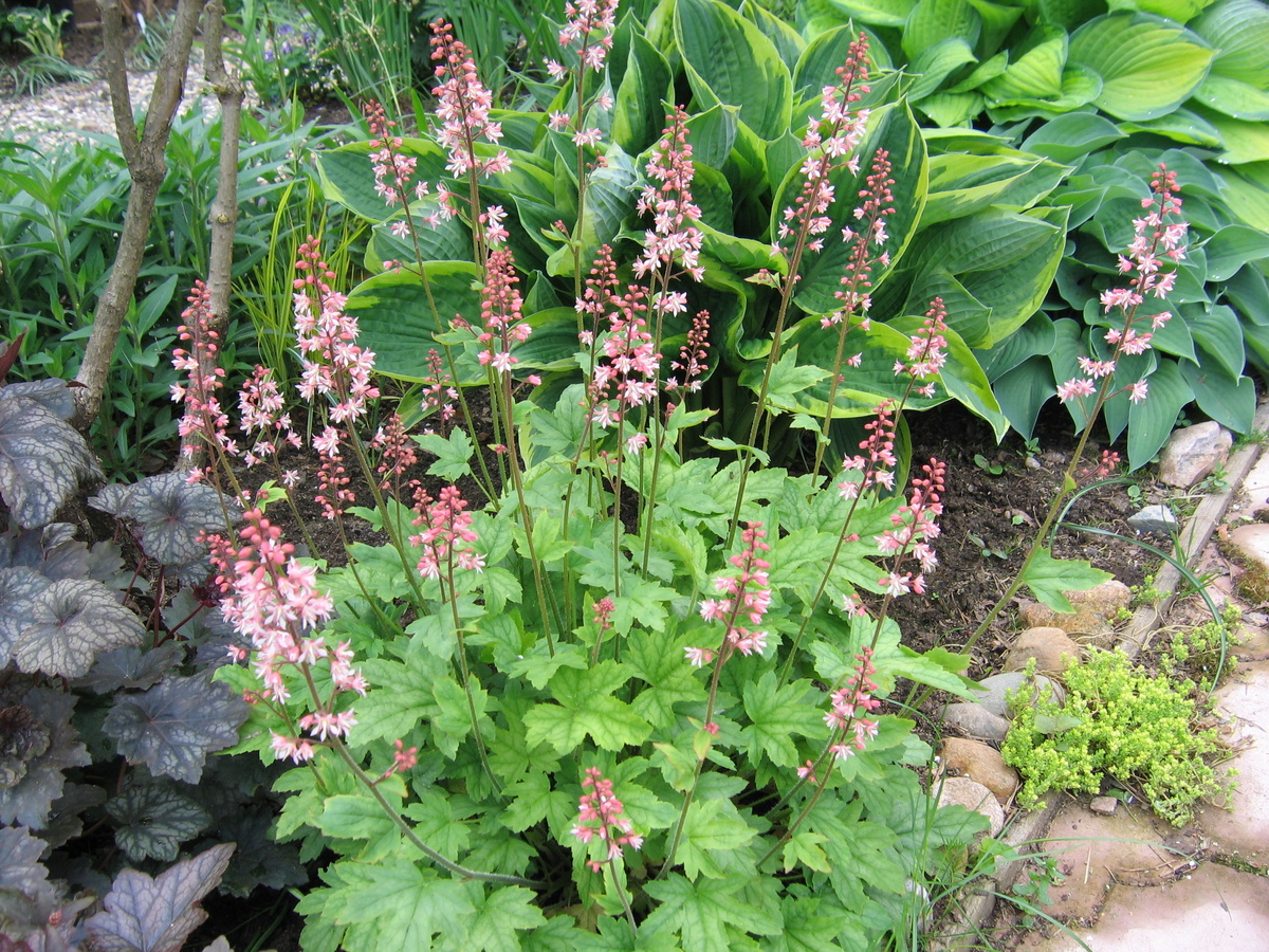 - Гейхерелла 'Viking Ship': Растение с резными светло-зелёными листьями, прекрасно вписывающееся в разнообразные цветники.