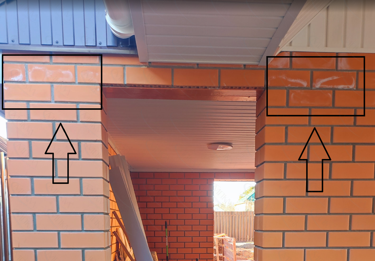 - Неправильное хранение материалов, что приводит к увлажнению кирпича перед кладкой.