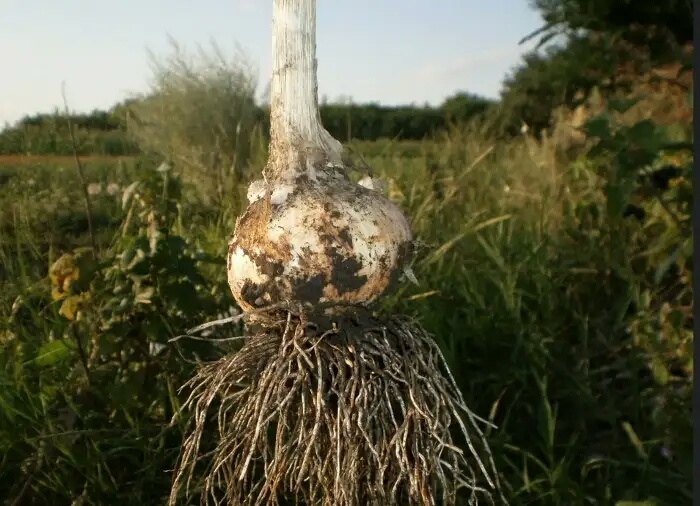 Корни также нуждаются в корректной обрезке. Оставив их слишком длинными, чеснок может повторно прорасти при первых теплых днях, что приведет к ухудшению качества. Вместе с тем, важно не нарушить целостность донца при обрезке корней: лучше оставить корни длиннее, чем получить гладкое донце и заведомо рисковать гнилью.