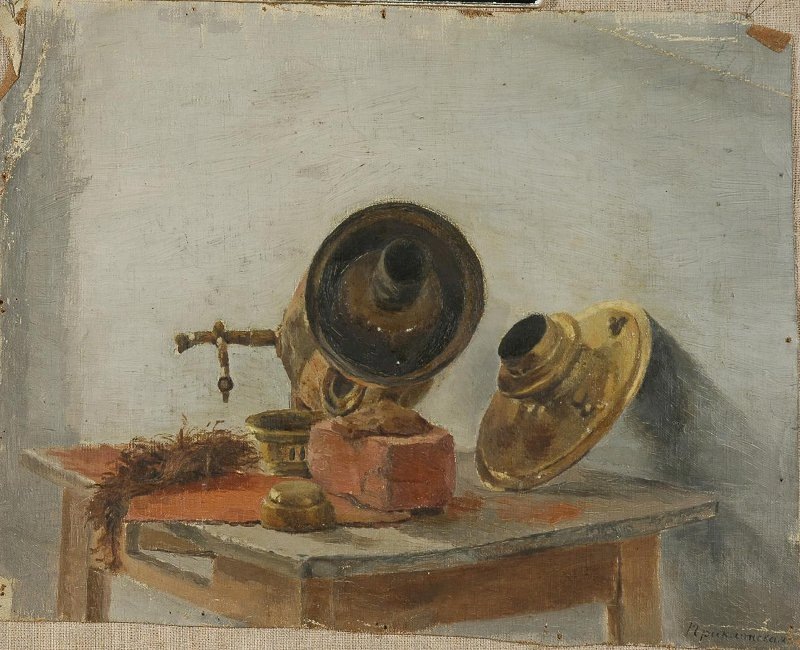 Начнем с натюрморта Ольги Приклонской начала XX века. На полотне виден самовар, который только что прошел очищение. Каждую субботу владельцы тщательно ухаживали за этим важным элементом быта с помощью мочалок, тряпок, золы, песка или специальных средств. В другом произведении Гнедича «Китайские тени» один из персонажей интересуется, кто отвечает за чистку самоваров, а хозяйка с улыбкой отмечает, что их просто обтирают замшей, так как они никелированы.