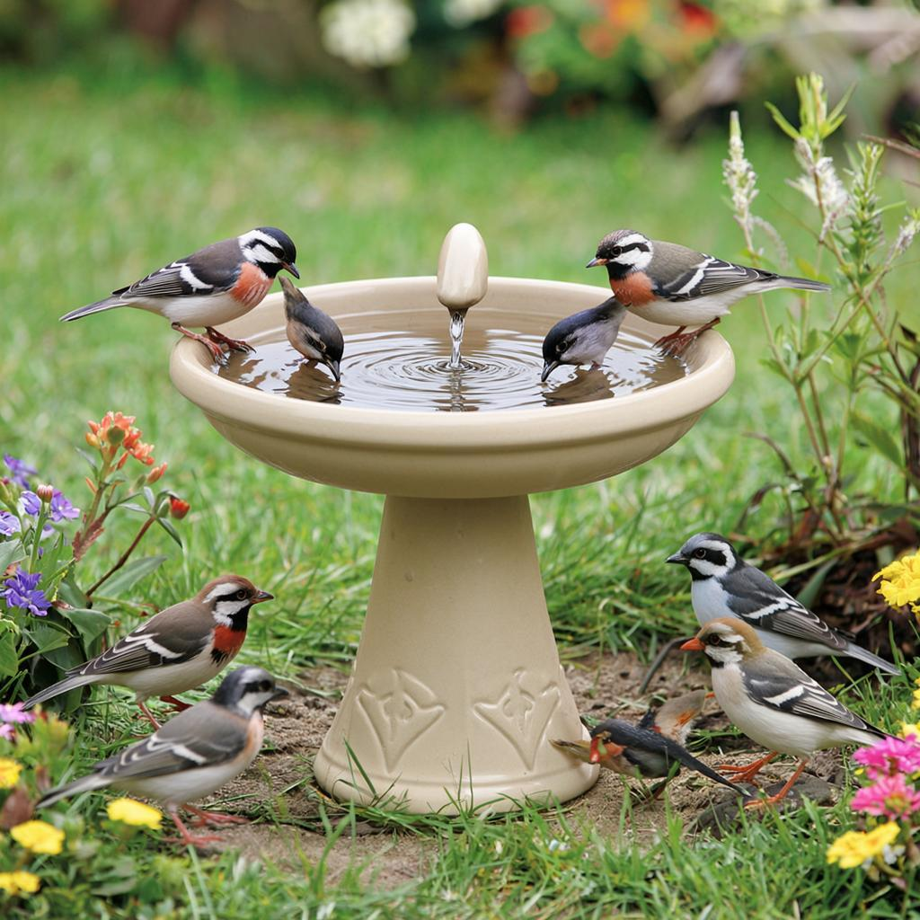 Когда фонтан собран, стоит добавить воду и включить насос, обратив внимание на напор воды. Теперь остается только ждать, когда птицы оценят новый источник свежей воды и порадуют вас своим присутствием в вашем маленьком природном уголке.