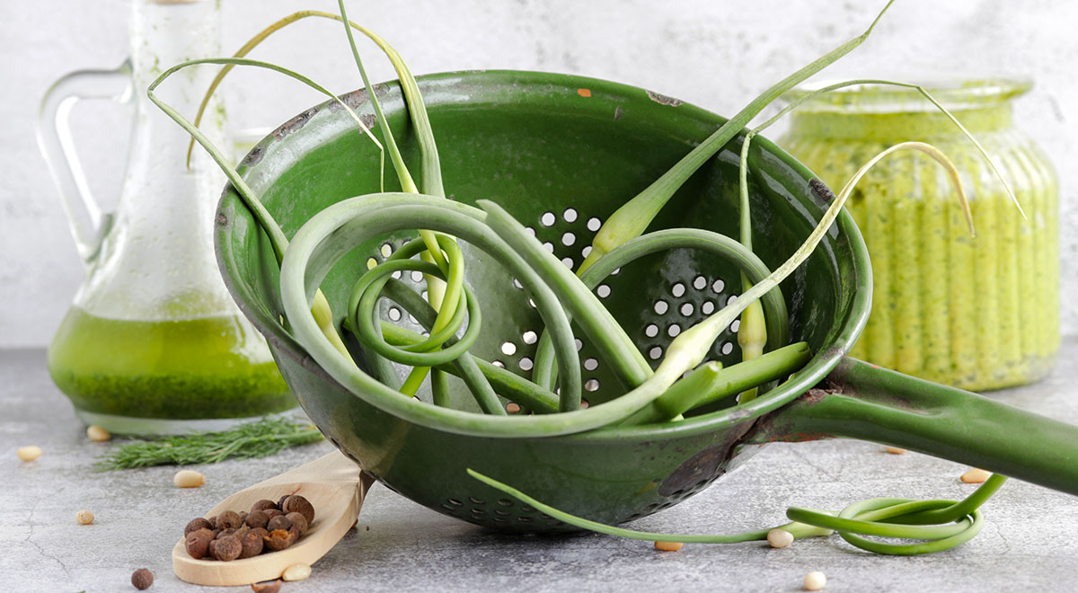 Чесночные стрелки — это нежные новые побеги чеснока, которые появляются весной и летом. Их легко спутать с зелёным луком, так как они обладают похожим вкусом и ароматом. Эти стрелки не только украсят любое блюдо, но и станут настоящим источником витаминов. В них много витамина C, B6, K, фолиевой кислоты, а также минералов, таких как калий и магний.