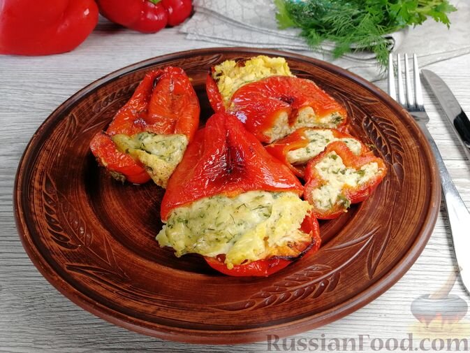 - Фаршированный перец с брынзой и яйцом. Этот простой и быстрый рецепт порадует даже самых требовательных гурманов. Перцы нафаршированы ароматной начинкой из творожного сыра, яиц и зелени. После запекания они приобретают нежный и аппетитный вкус.