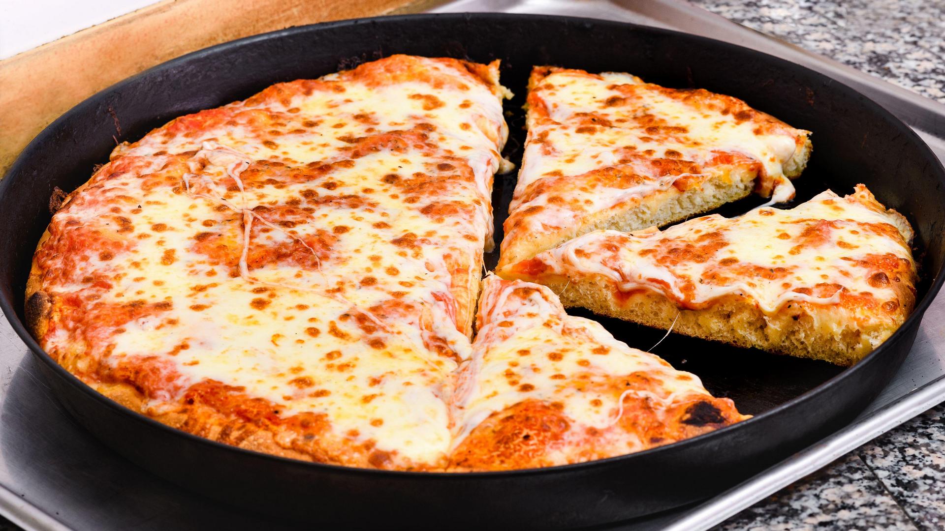 Пиццу не нужно выпекать в духовке: нужна только сковорода и несколько глубоких мисок для замешивания теста и начинки.