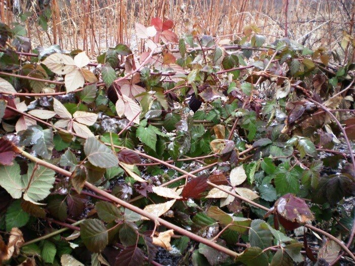 - Раннее укрытие и чрезмерное утепление. Испугавшись подмерзших кустов, некоторые садоводы начинают укрывать ежевику слишком рано и многослойно. Это приводит к созданию «парникового эффекта» и загниванию побегов. Опадающие листья в качестве утеплителя также могут привести к переувлажнению и усугубить ситуацию, особенно если они намокают и начинают гнить.