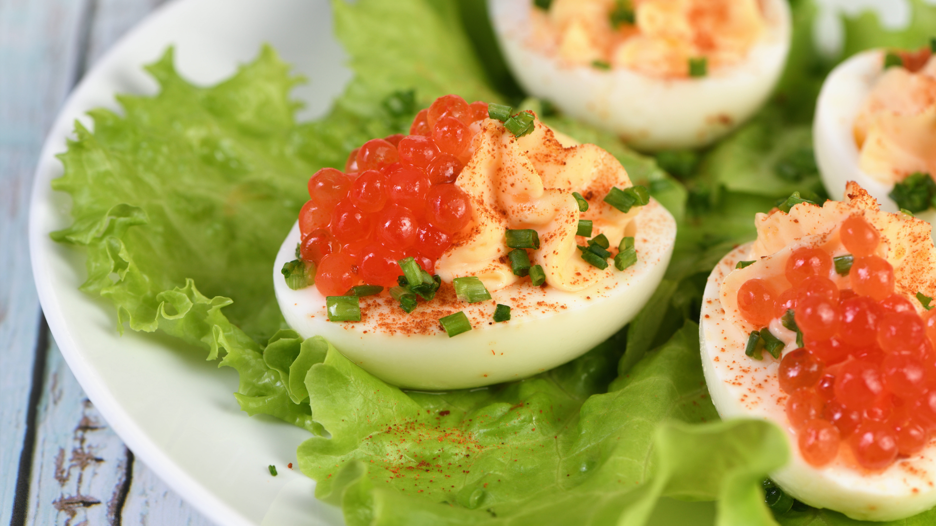 Остудите сваренные вкрутую яйца и разрежьте на две половинки. Желтки и часть шпрот разомните вилкой в отдельной миске, добавьте соль, перец и майонез. Нафаршируйте белки начинкой. Оставшуюся рыбу необходимо воткнуть хвостиком вверх, рядом выложить немного икры и пучок зелени, пишет портал «Лайфхакер».