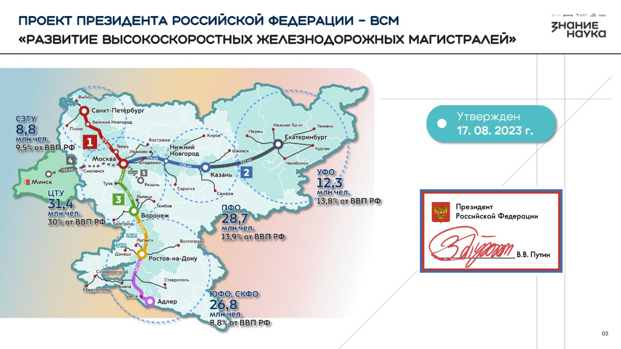 Первая российская высокоскоростная магистраль соединит Москву и Санкт-Петербург, пройдет через Тверскую область. Поезда будут курсировать каждые 15 минут, а время в пути между столицами составит всего 2 часа 15 минут.