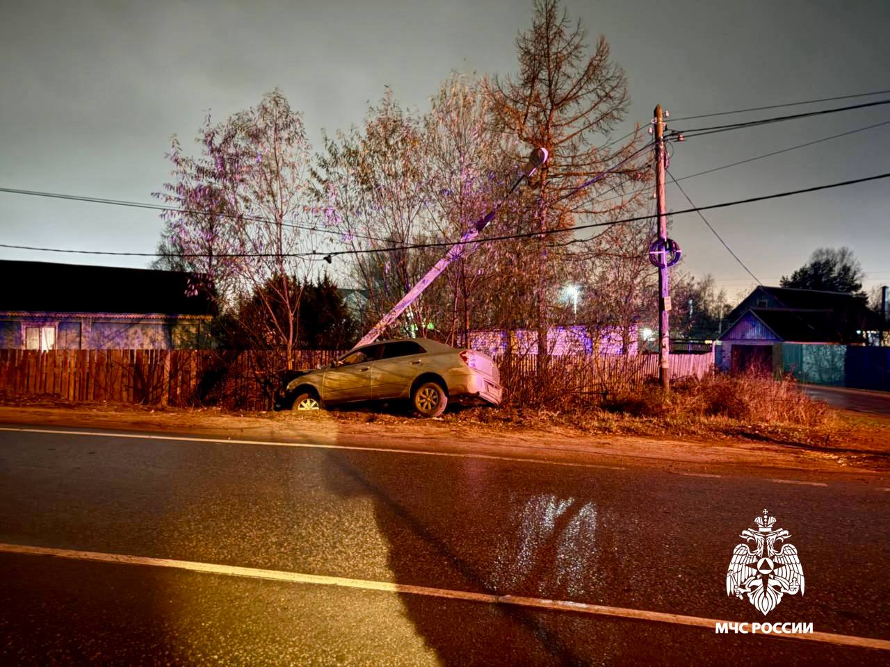 Сотрудники МЧС ликвидировали последствия ДТП, где автомобиль влетел в столб.
