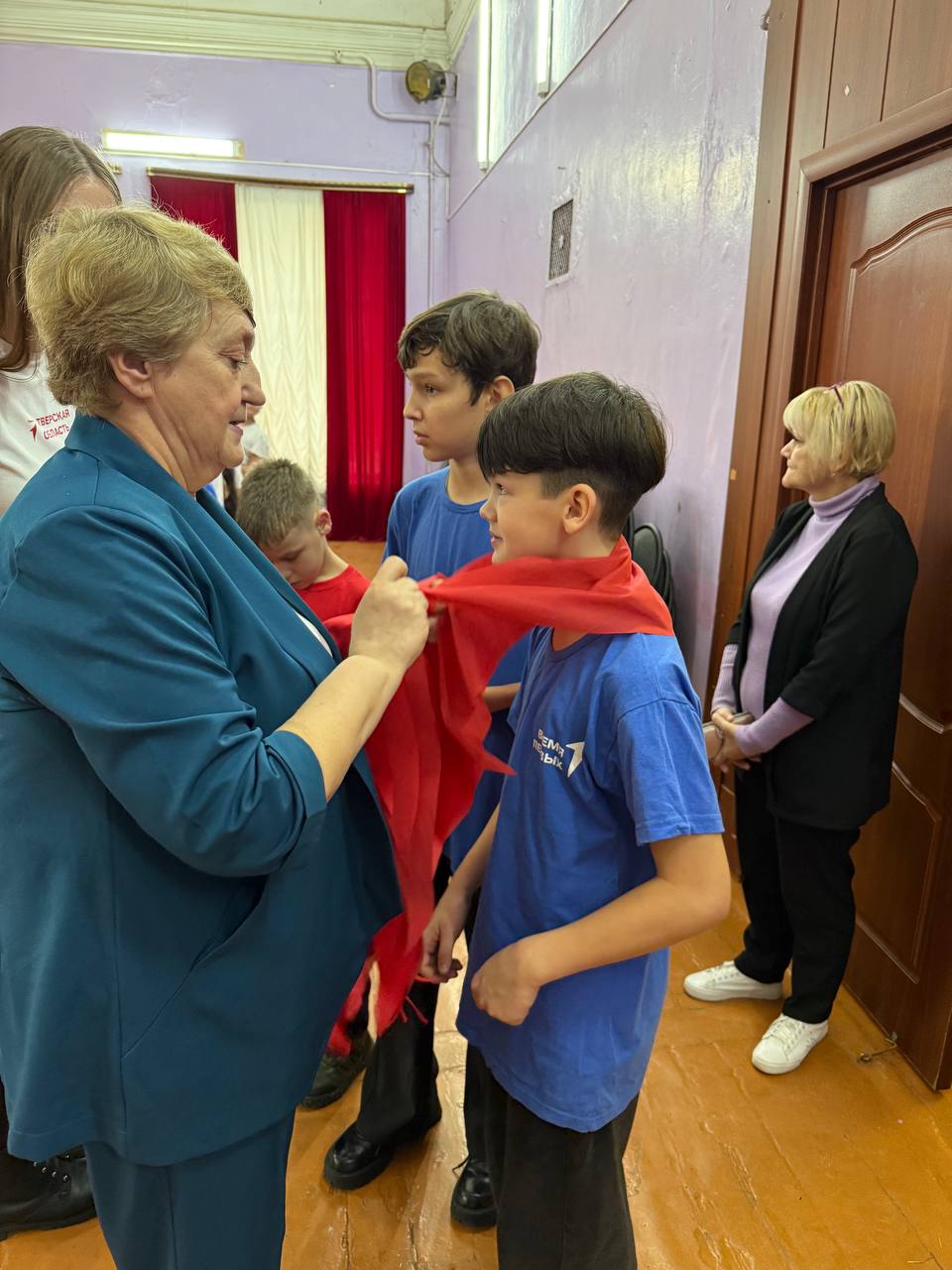 Сегодня председатель ТИК Вышневолоцкого округа Марина Калинина в Гимназии №2 приняла участие в торжественной церемонии вступления в ряды Движения Первых, - после произнесенной клятвы 52 пятиклассникам повязаны красные галстуки и прикреплены значки. 10 ноября 2025 года такие церемонии прошли по всей Тверской области.