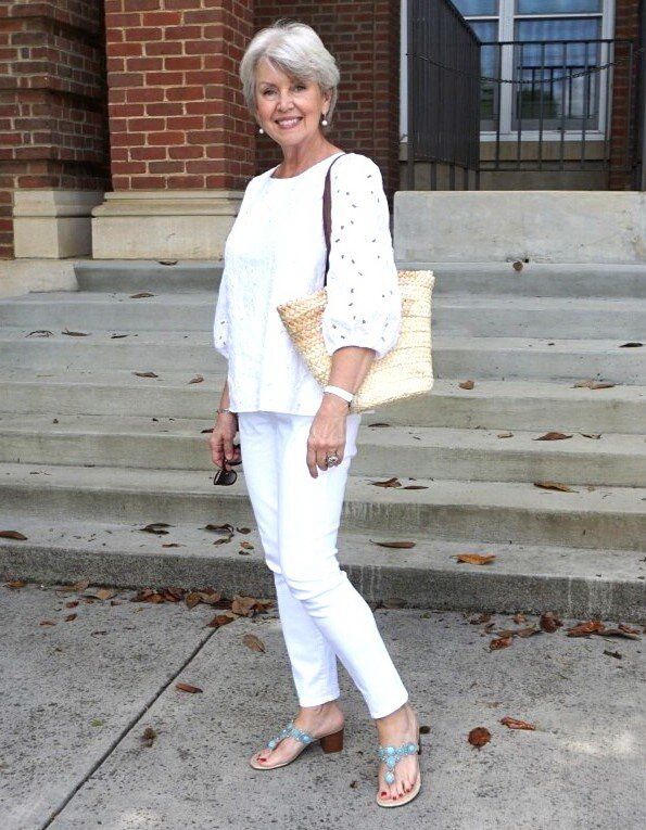 - Жемчужный: Этот оттенок дарит нежness, визуально улучшая состояние кожи. Жемчужные топы и шарфы должны занять почетное место в гардеробах зрелых женщин