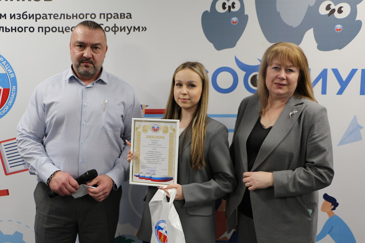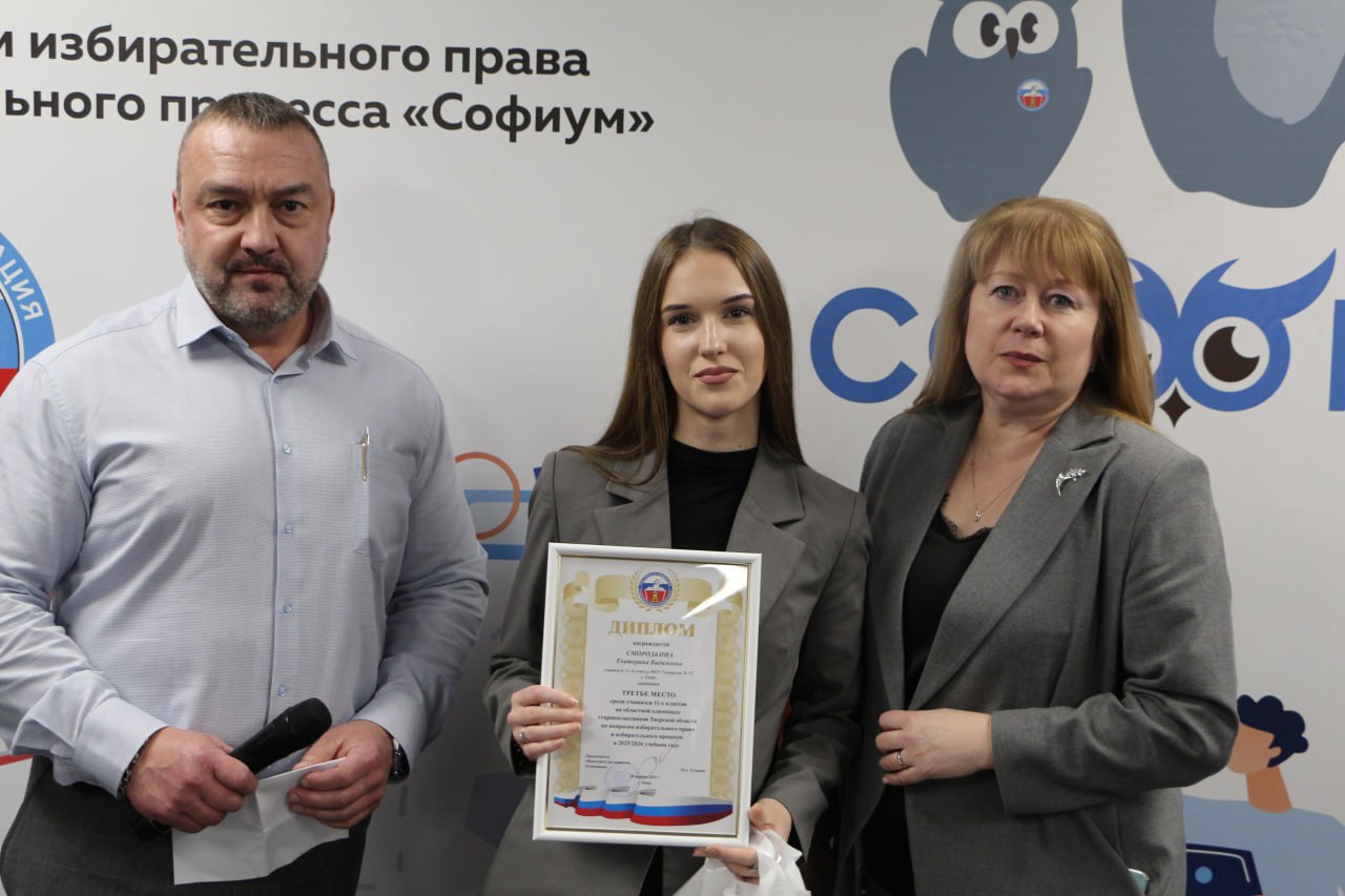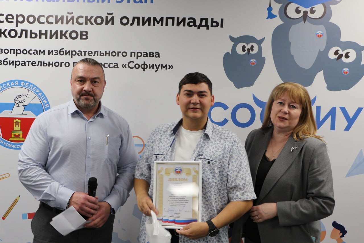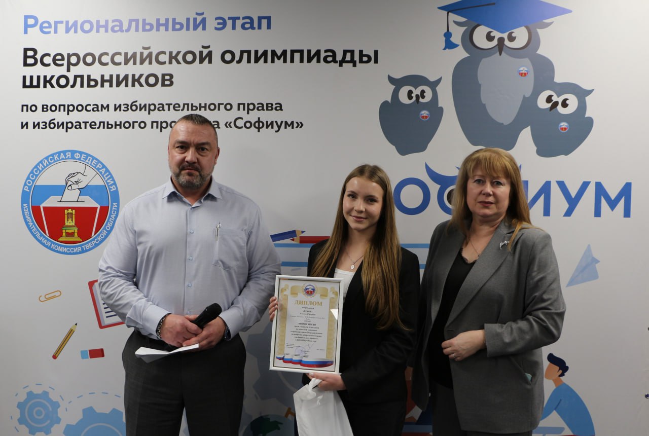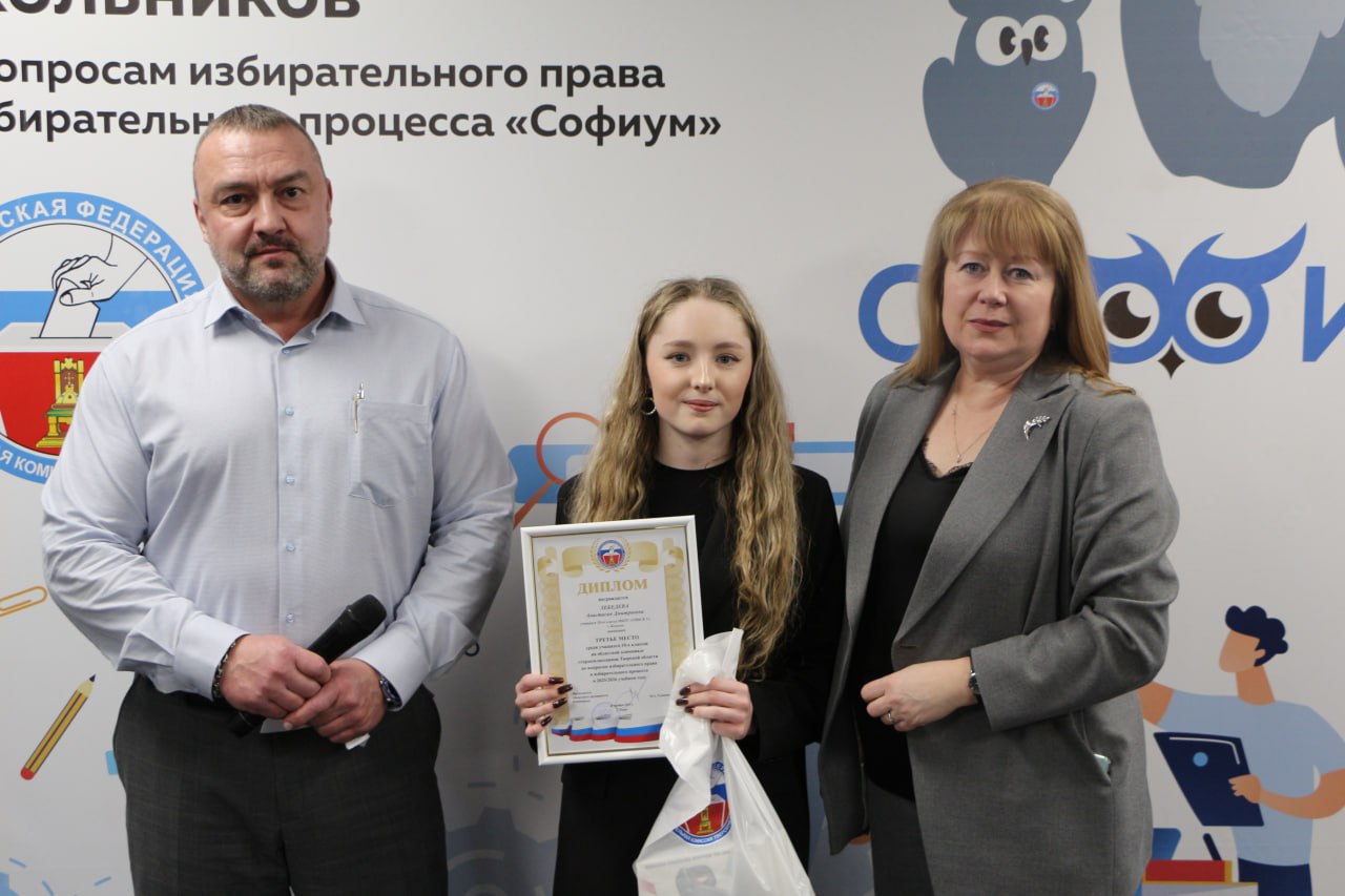Победителей поздравили председатель избирательной комиссии региона Валентина Дронова и председатель жюри олимпиады Максим Туманов - ребятам вручены дипломы и призы избирательной комиссии Тверской области.