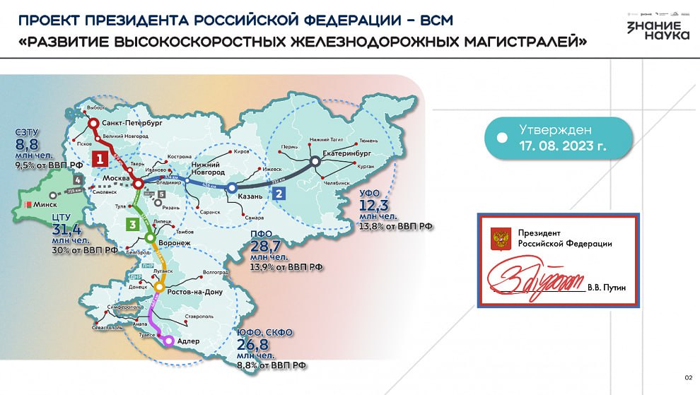 Продолжается строительство высокоскоростной железнодорожной магистрали Москва- Санкт-Петербург. Строят не только железнодорожное полотно, но и поезда. Первые 2 поезда поступят в 2027 году, в 2028 году будет уже 28 поездов, к 2030 — 43. На все 5 ВСМ запланировано получение 300 поездов. Вице-премьер Виталий Савельев на пленарной дискуссии в рамках транспортной недели рассказал о ходе строительства ВСМ.