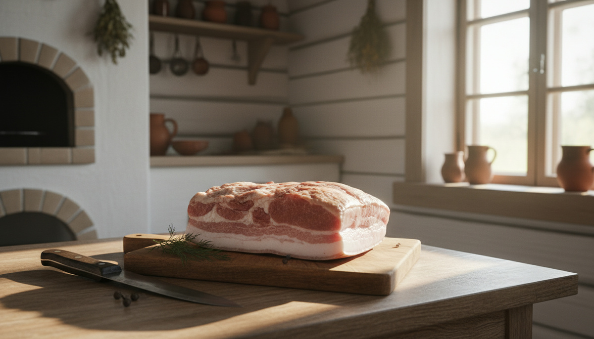 Выбирая куски сала или бекона для продажи, важно обратить внимание на несколько факторов. Идеальный вариант для бекона — это грудинка (брюшина), которая создает слоистую текстуру «мясо-сало-мясо». Лучше всего выбирать куски с кожей, если планируется копчение целиком. Для закусочного сала отлично подойдут порционные куски с мясными прожилками, чаще всего весящие около 200-400 граммов, идеально подходящие для подарков.