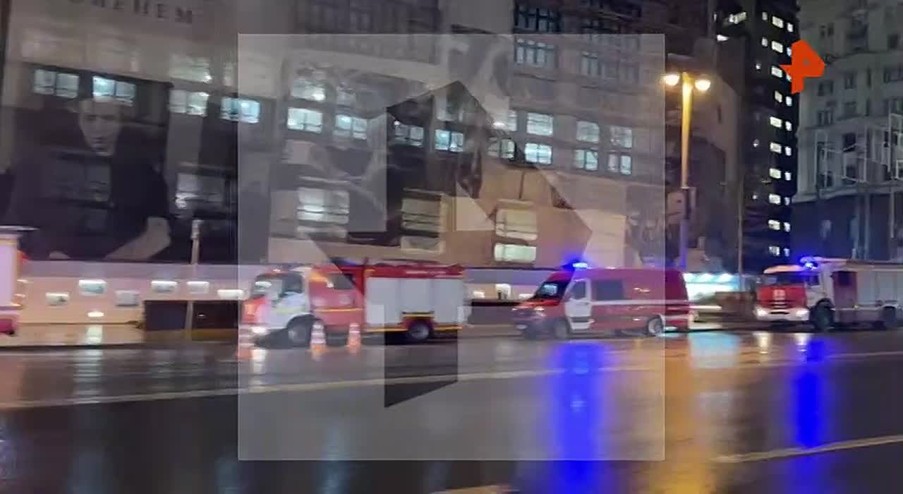 На Тверской улице, где произошло возгорание нежилого здания, выстроились длинные линии из пожарных машин и карет скорой помощи.