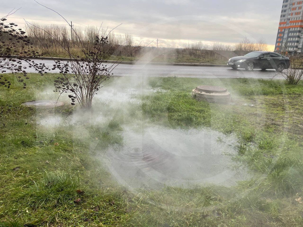 По словам очевидца, вода продолжает выходить на поверхность, а пар заметен уже издалека.