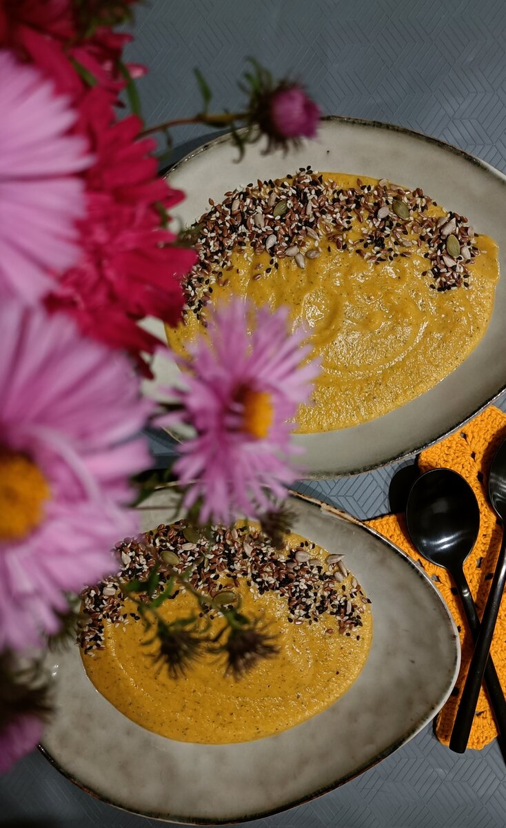 На финальном этапе добавить соль и специи по вкусу, а затем все тщательно пробить погружным блендером до получения однородной массы. Влить кокосовое молоко, хорошо перемешать и вернуть на плиту до закипания. Ароматный и питательный суп готов к подаче. При желании, можно дополнить его семенами или запеченной курицей для создания достойного кулинарного аккорда.
