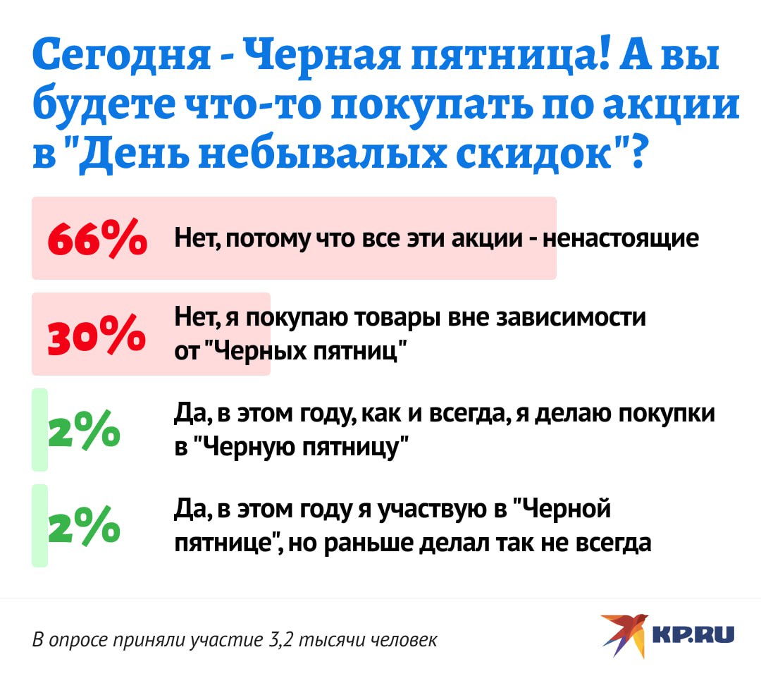 Россияне объявили бойкот "Черной пятнице": Только 4% опрошенных KP.RU россиян планируют покупать товары по акциям в день распродаж