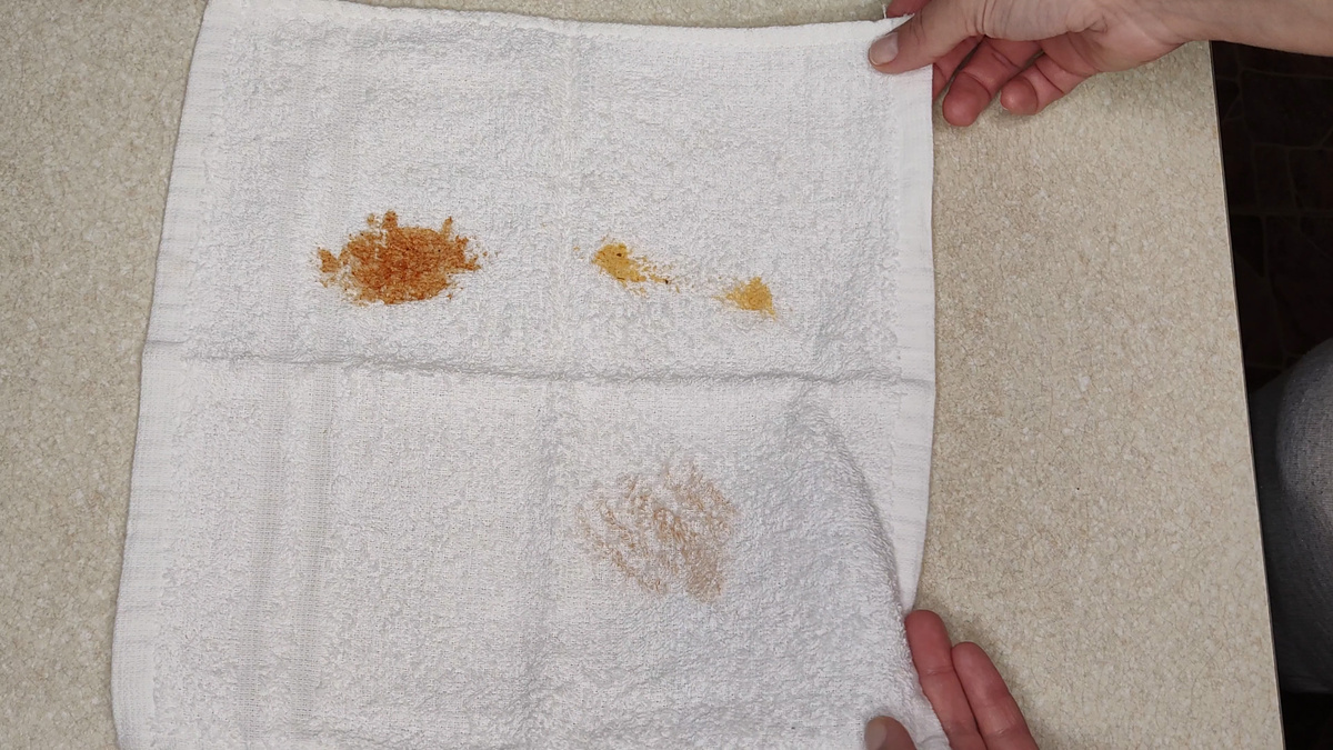 После замачивания рекомендуется внимательно осмотреть полотенца на предмет остатков пятен. Если они все еще просматриваются, стоит намылить их хозяйственным мылом, тщательно потерев загрязненные участки руками. На этом этапе большинство пятен уже должно практически исчезнуть.