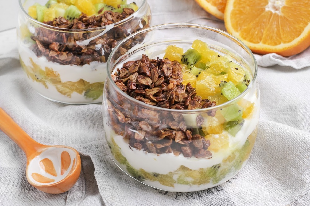 Гранола, состоящая из злаков, орехов и сухофруктов, — это не просто полезный перекус. Запеченная до хрустящей текстуры, она может стать основой для незабываемого утреннего блюда. В сочетании с йогуртом и свежими фруктами, такими как апельсины и киви, эта смесь становится настоящим кулинарным шедевром.