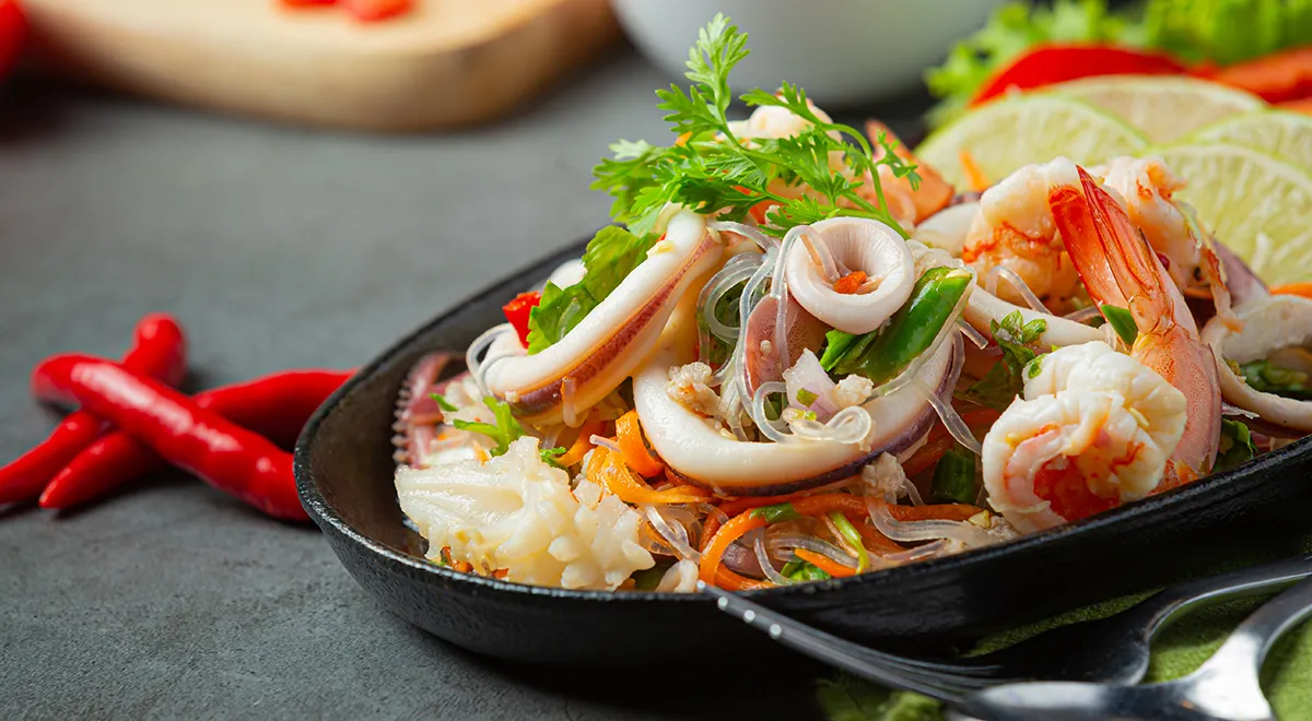 Первый шаг — подготовить морепродукты. Если они замороженные, их следует разморозить и тщательно промыть. На сковороде с небольшим количество оливкового масла морепродукты обжариваются на сильном огне в течение 3-4 минут. Важно не передержать их, чтобы избежать жесткости. В конце обжаривания добавьте лимонный сок.