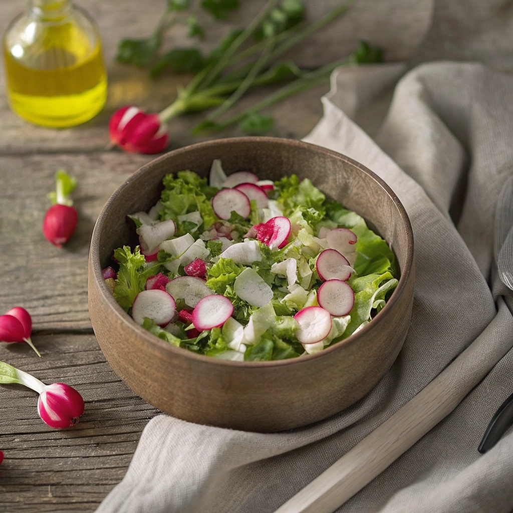 - Салат с редисом и зеленью: просто нарежьте свежий редис и смешайте его с любимым зеленым салатом. Заправьте оливковым маслом и лимонным соком для яркого вкуса.